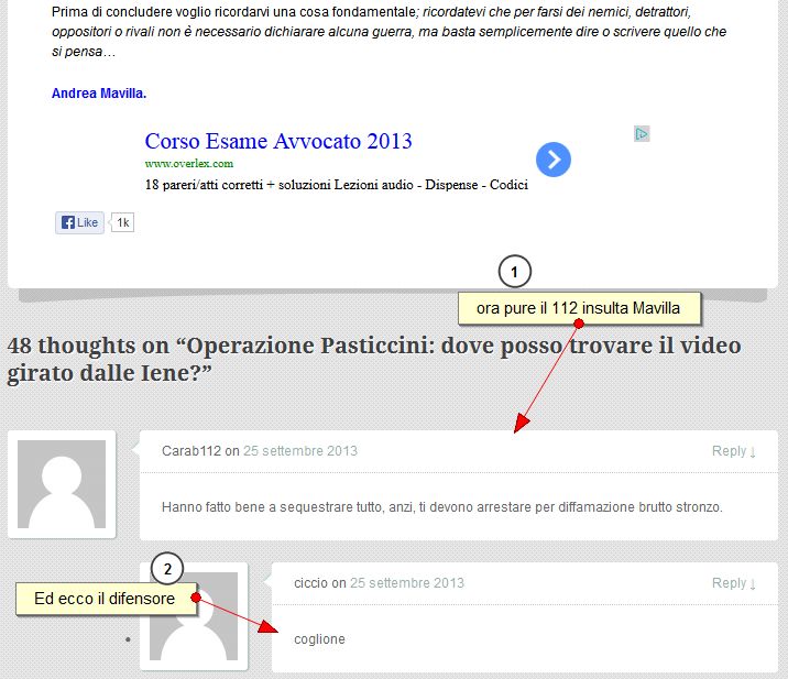 Commenti costruiti ad hoc di Andrea MavillaNon lo voglio commentare… anche perché si commenta da solo (è talmente ridicolo… per fortuna la Iena fa notare che Mavilla non è proprio una persona attendibile. Ma poi le Iene non hanno niente di meglio da fare che stare dietro a questa gente?).